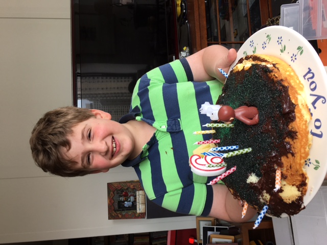 Jack baked and decorated this cake on his own for our anniversary.   He said that whenever we have an anniversary, just let him know, and he has the cake covered.