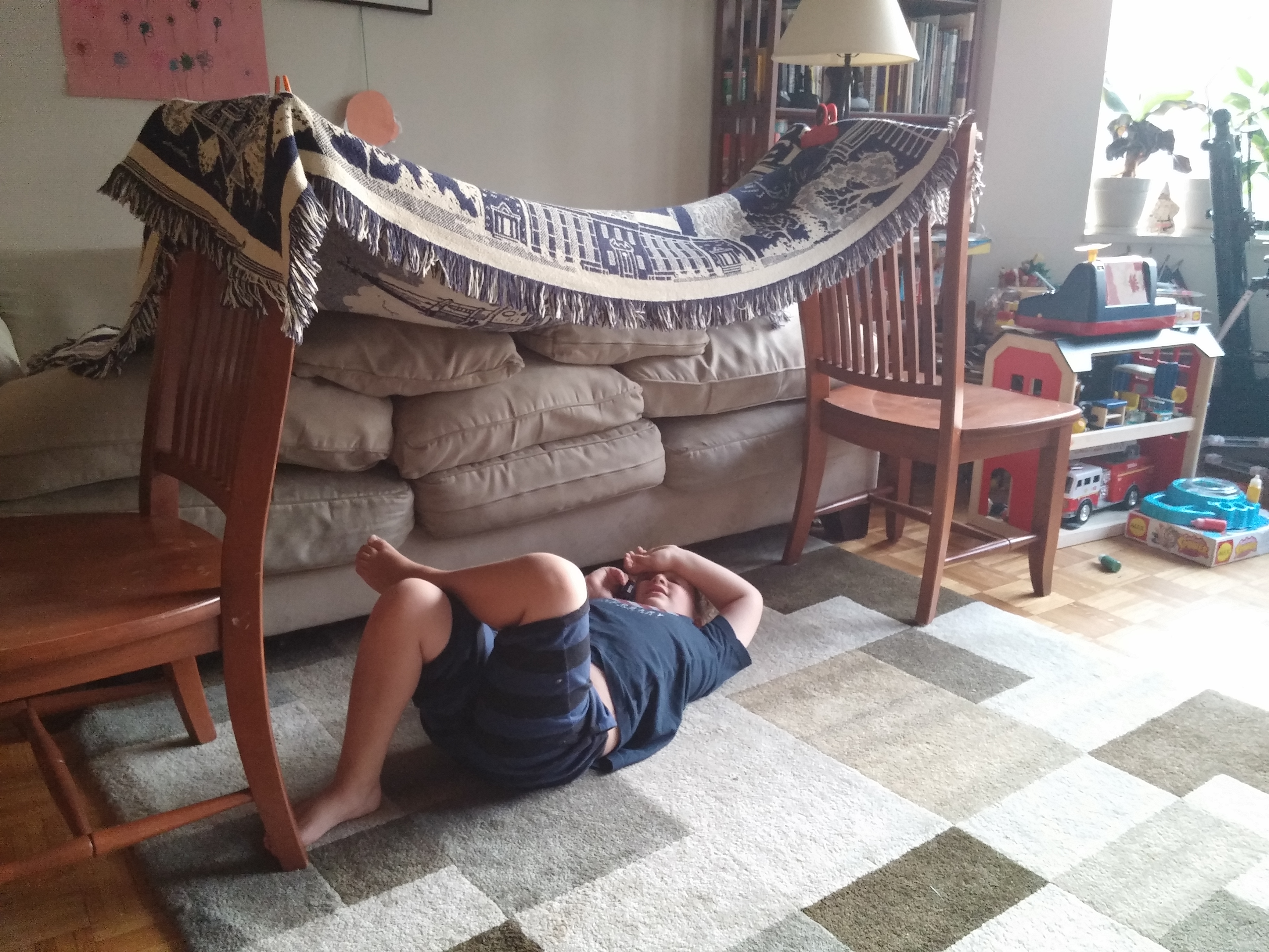 What are you doing, Jack? September 17, 2015Uncategorizedjacksdad Jack was on the phone with gram. She asked what he was doing. He said : "lying in my fort, talking to you. "